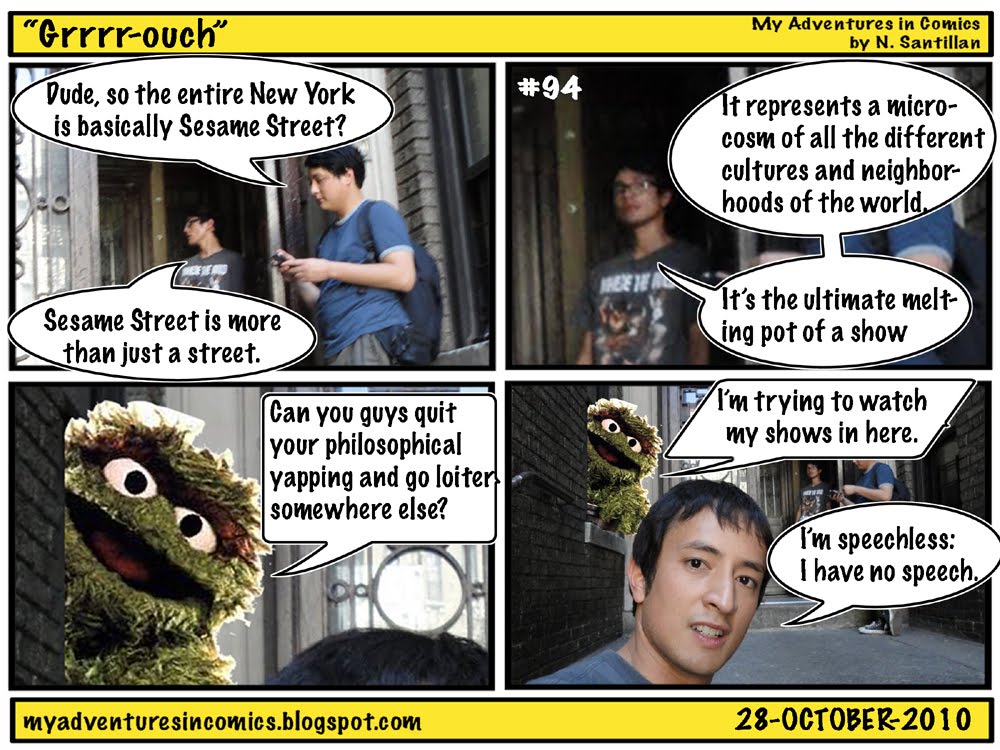 As a kid, I kind of liked Oscar over all the other characters. He lived in a depth-less trash can. He had everything in there. But now that I think about it, he’s really a smelly annoying bum who hangs out right outside the front door.