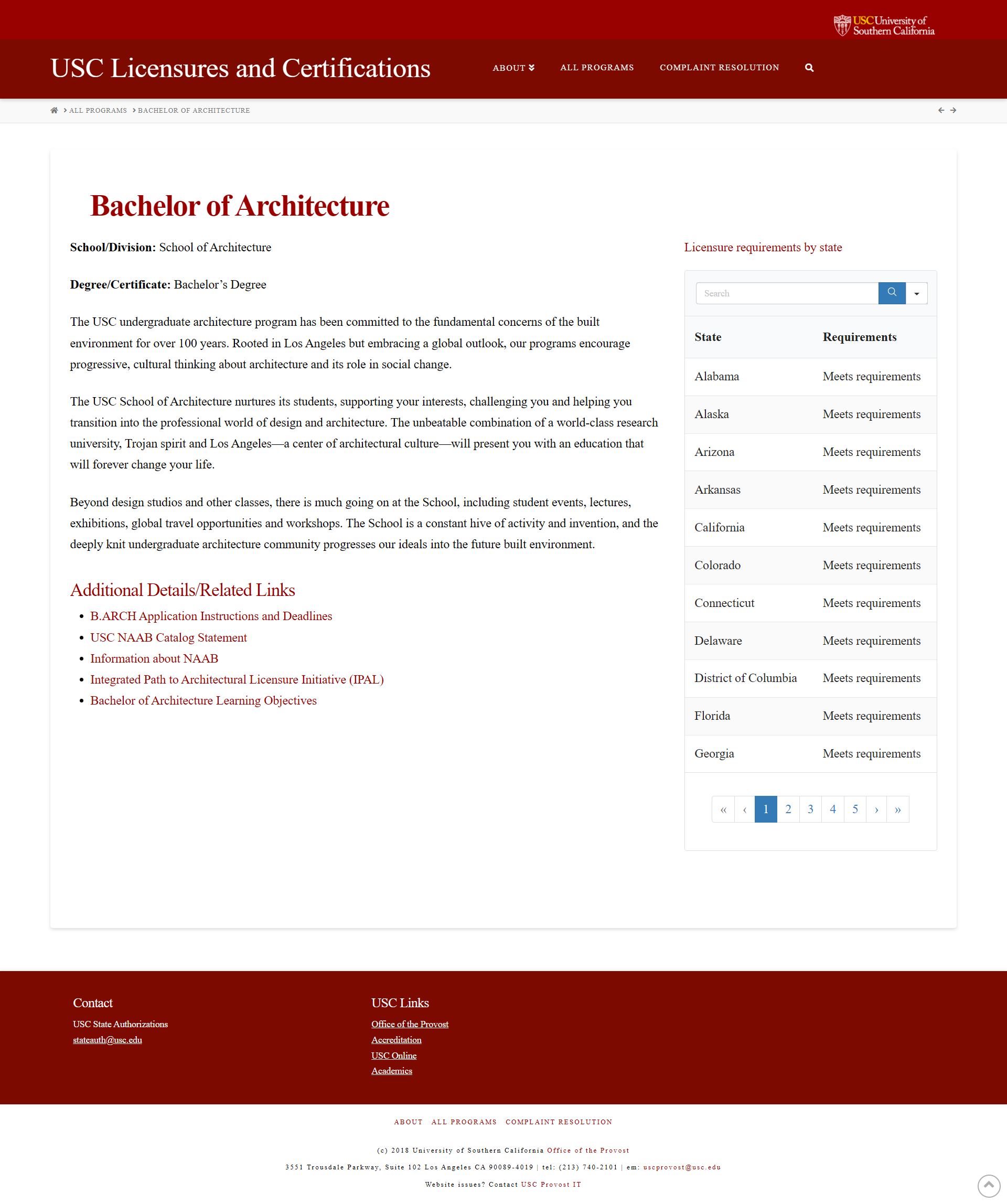 USC was undergoing a review and needed a quick website that could easily display information whether or not a program meets licensure and state certification requirements for any given state.